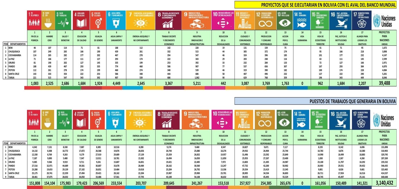 Nº DE PROYECTOS POR DEPARTAMENTO Y Nº PUESTOS TRABAJO EN BOLIVIA