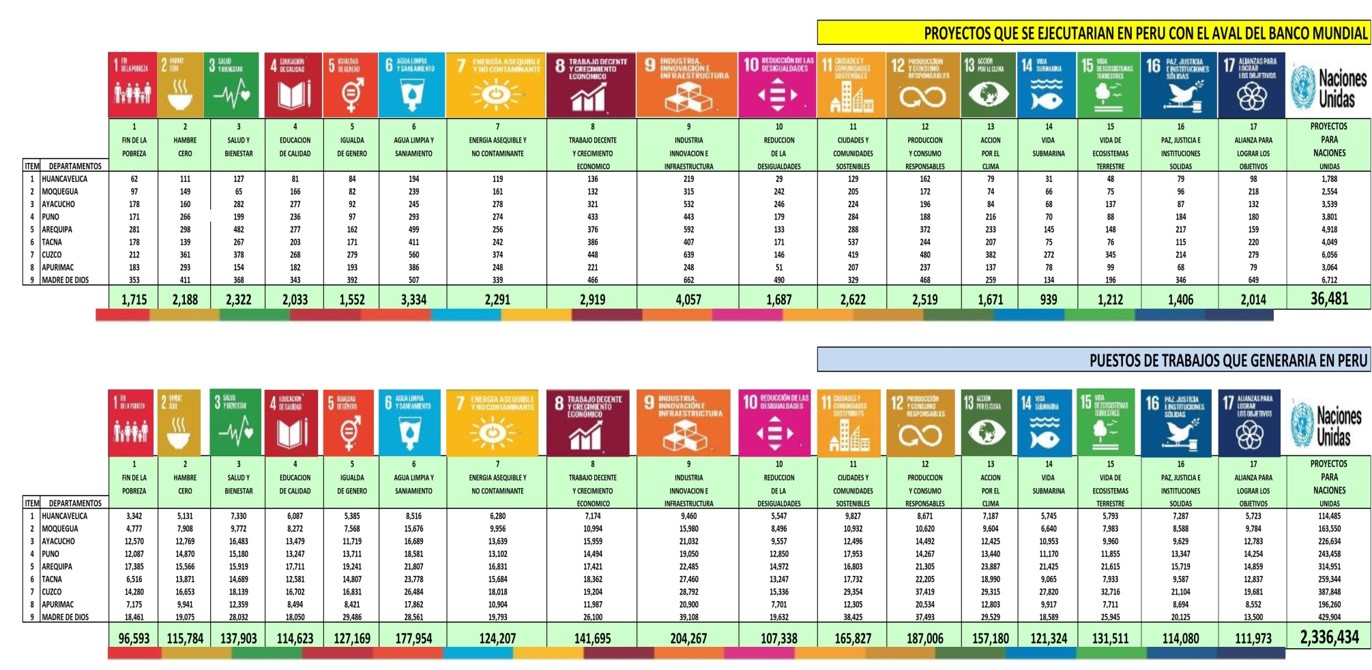 Nº DE PROYECTOS POR DEPARTAMENTO Y Nº PUESTOS TRABAJO EN PERU